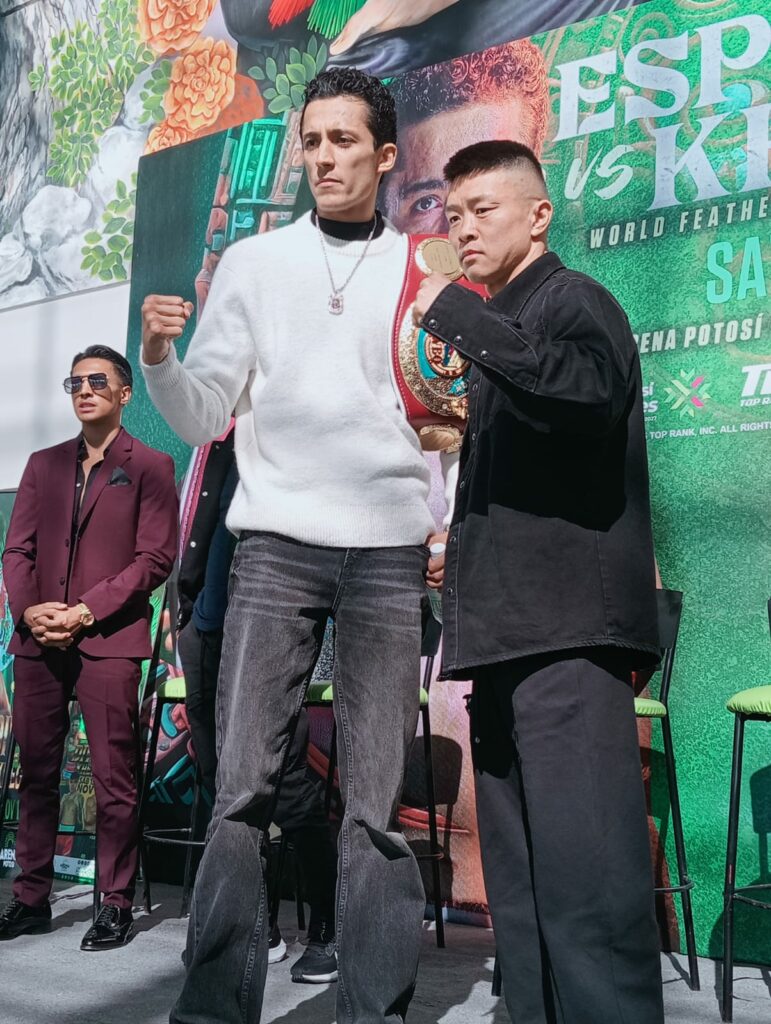Acudieron los actores principales de la función, el mexicano Rafael “El Divino” Espinoza actual campeón mundial de peso pluma WBO y su retador el ucraniano Arnold “Arni” Khegai; además los boxeadores Emiliano “El General Vargas”; el neoleonés Lindolfo Delgado y su rival el tapatío Gabriel Gollaz; Richard Torres Jr. de California y el potosino Jorge “El Ruso” Ascanio.