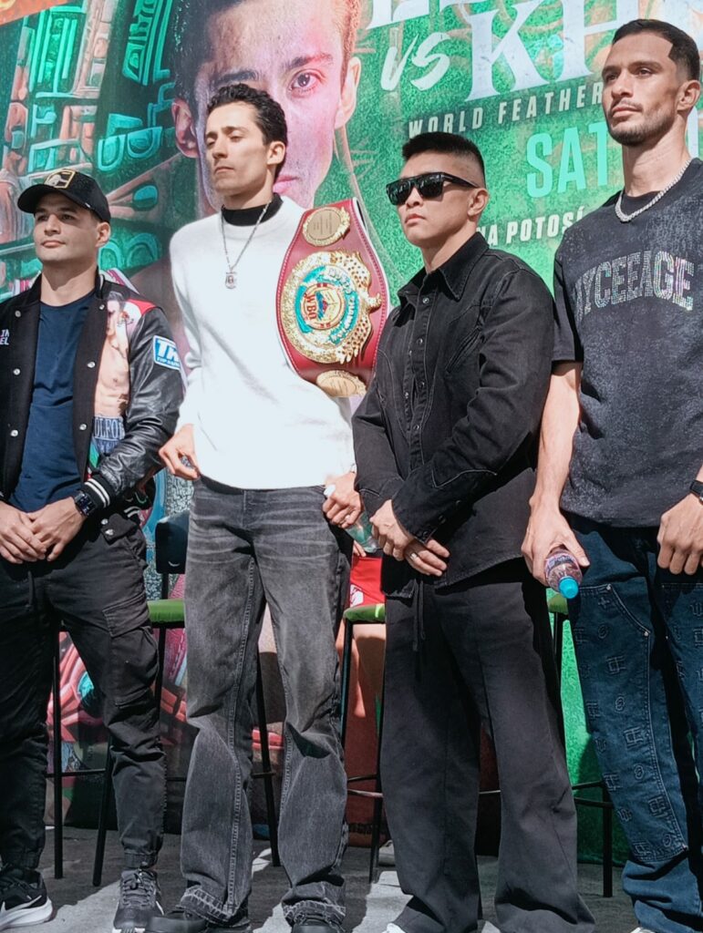 Con ellos, el Director General del Instituto Potosino de Cultura Física y Deporte, Francisco Javier Serrano Altuzar, el Director de la Arena Potosí, Cristopher Pérez Vargas; Gabriel Rivas representante de Top Rank y el Director Operativo de Zanfer Boxing Guillermo Brito.