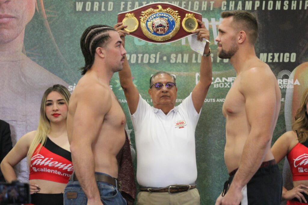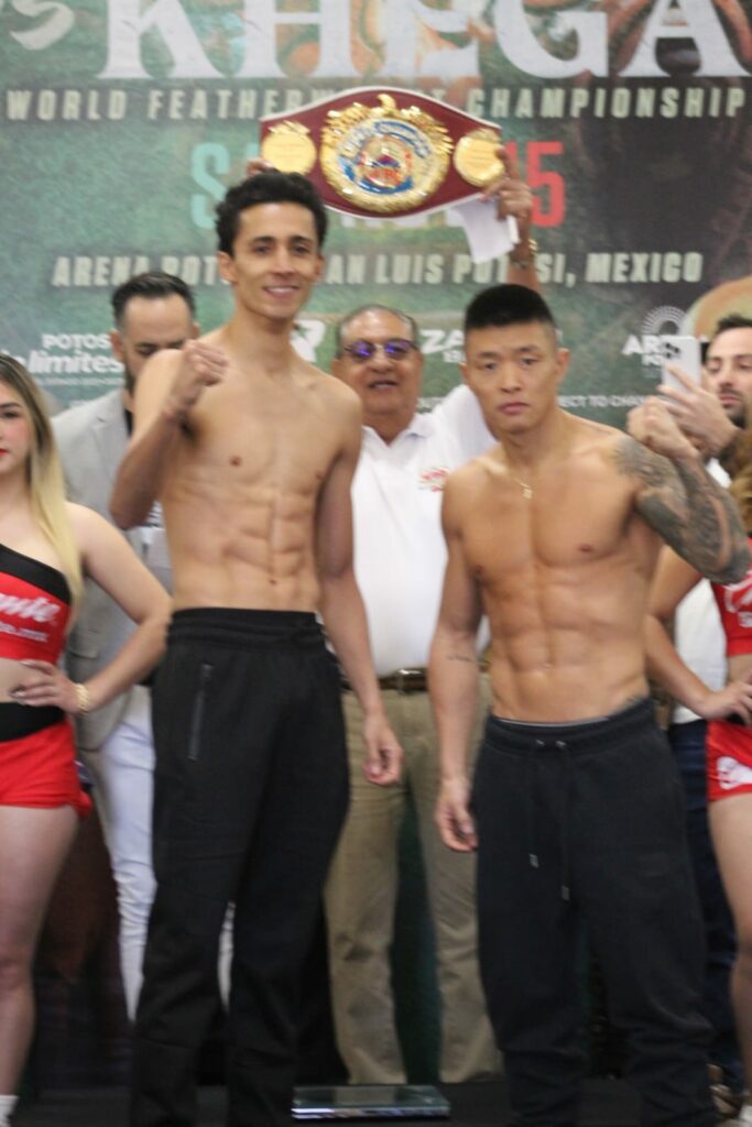 Se llevó a cabo la ceremonia de pesaje de la función de box profesional que se llevará a cabo este sábado en la Arena Potosí, organizada por la empresa Zanfer Boxing en la cual se disputarán cinco peleas de campeonato destacando la estelar entre el jalisciense Rafael “El Divino” Espinoza contra el Ucraniano Arnold Khegai, duelo por el campeonato mundial de peso pluma WBO.
