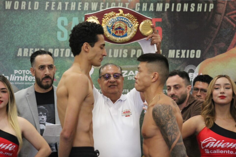 Se llevó a cabo la ceremonia de pesaje de la función de box profesional que se llevará a cabo este sábado en la Arena Potosí, organizada por la empresa Zanfer Boxing en la cual se disputarán cinco peleas de campeonato destacando la estelar entre el jalisciense Rafael “El Divino” Espinoza contra el Ucraniano Arnold Khegai, duelo por el campeonato mundial de peso pluma WBO.