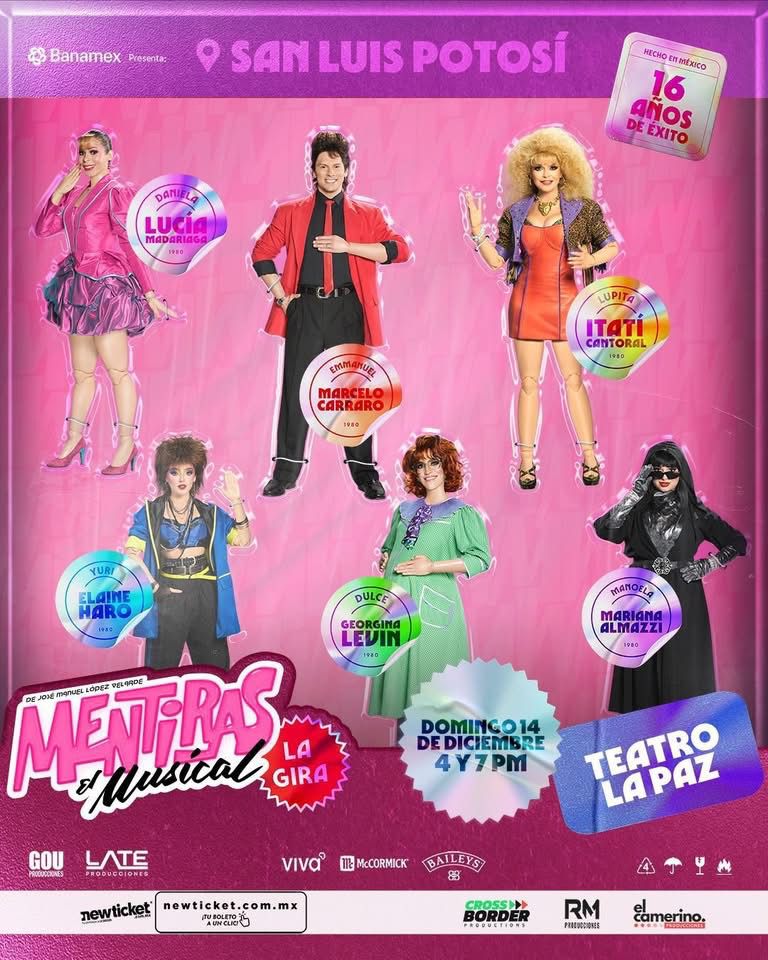 Con una trayectoria que supera una década en cartelera y miles de espectadores, “Mentiras, el Musical” se ha consolidado como un fenómeno cultural gracias a su humor, nostalgia ochentera, números musicales vibrantes y una historia que conecta con diversas generaciones.