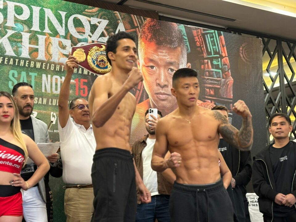 San Luis Potosí se encuentra preparado para una noche memorable con la función de boxeo profesional organizada por Zanfer Boxing. En la ceremonia oficial de pesaje, Rafael “El Divino” Espinoza y Arnold Khegai superaron sin contratiempos la báscula en la división pluma, dejando todo listo para disputar el Campeonato Mundial de Peso Pluma WBO ante un público que promete abarrotar la Arena Potosí.