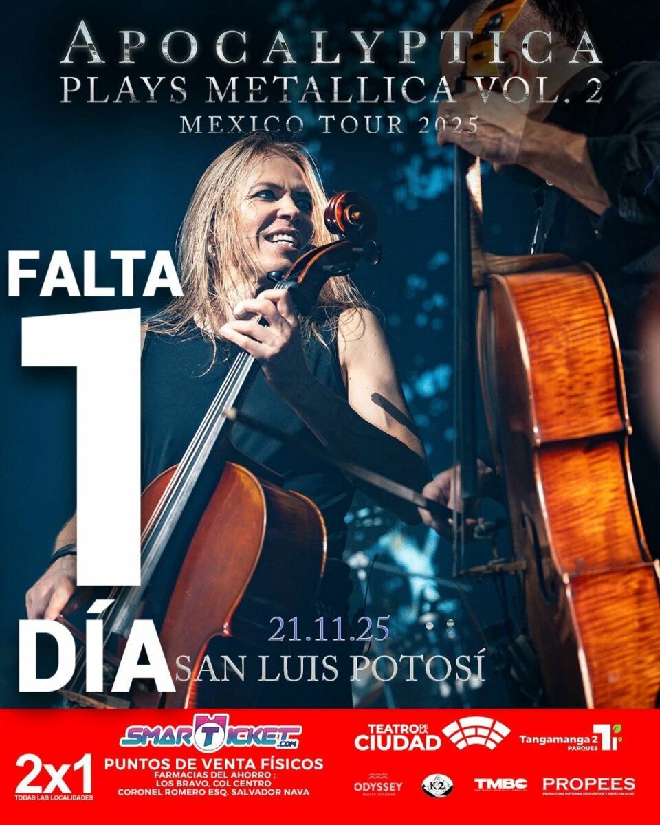 Apocalyptica se ha consolidado como una de las propuestas más originales dentro del metal contemporáneo, y su llegada a San Luis Potosí representa una oportunidad excepcional para disfrutar de un espectáculo que redefine los límites del género.