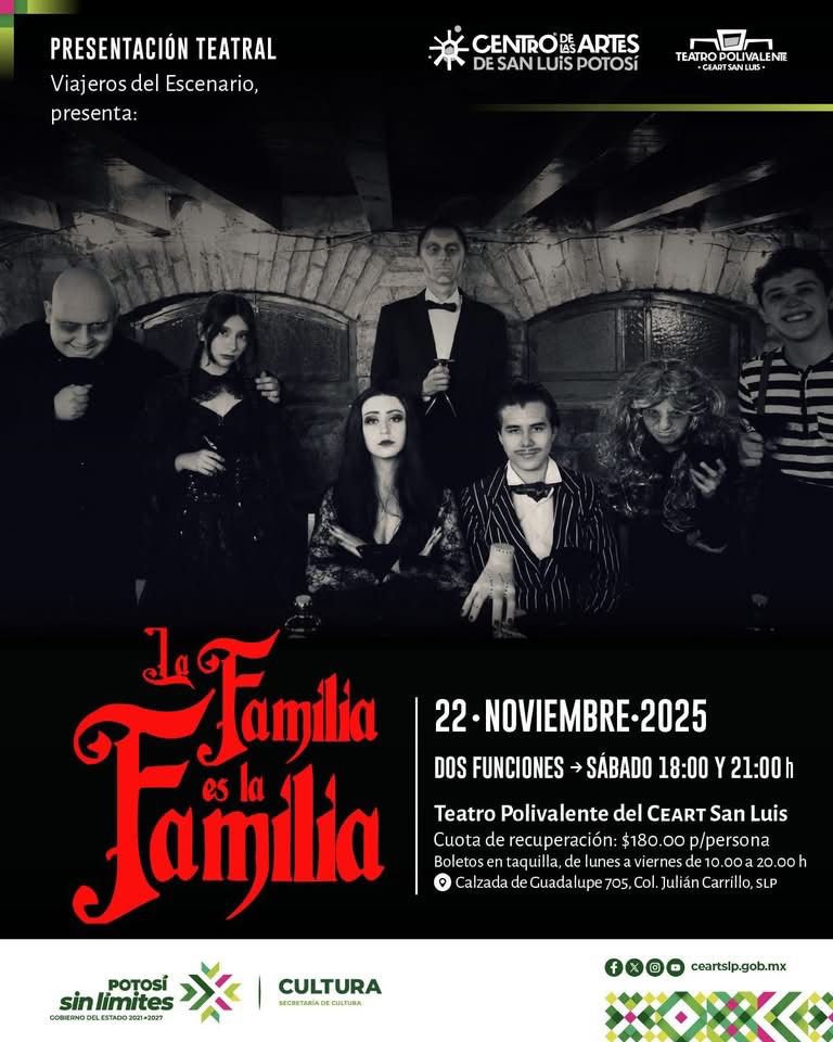 El grupo teatral Viajeros del Escenario invita al público potosino a disfrutar de su más reciente producción, el musical “La Familia es la Familia”, una puesta en escena que combina comedia, música y momentos emotivos para reflexionar sobre los vínculos familiares.
