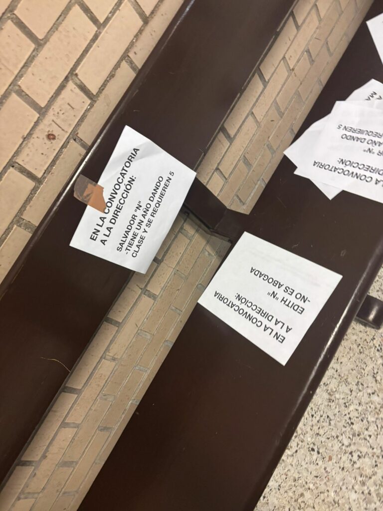 Fue este jueves, a la misma hora que sesionaba el Consejo Directivo Universitario que se comenzaron a pegar en diversas partes de la institución hojas de máquina con mensajes donde se justifica que no hayan entrado a la terna para ser consideradas.