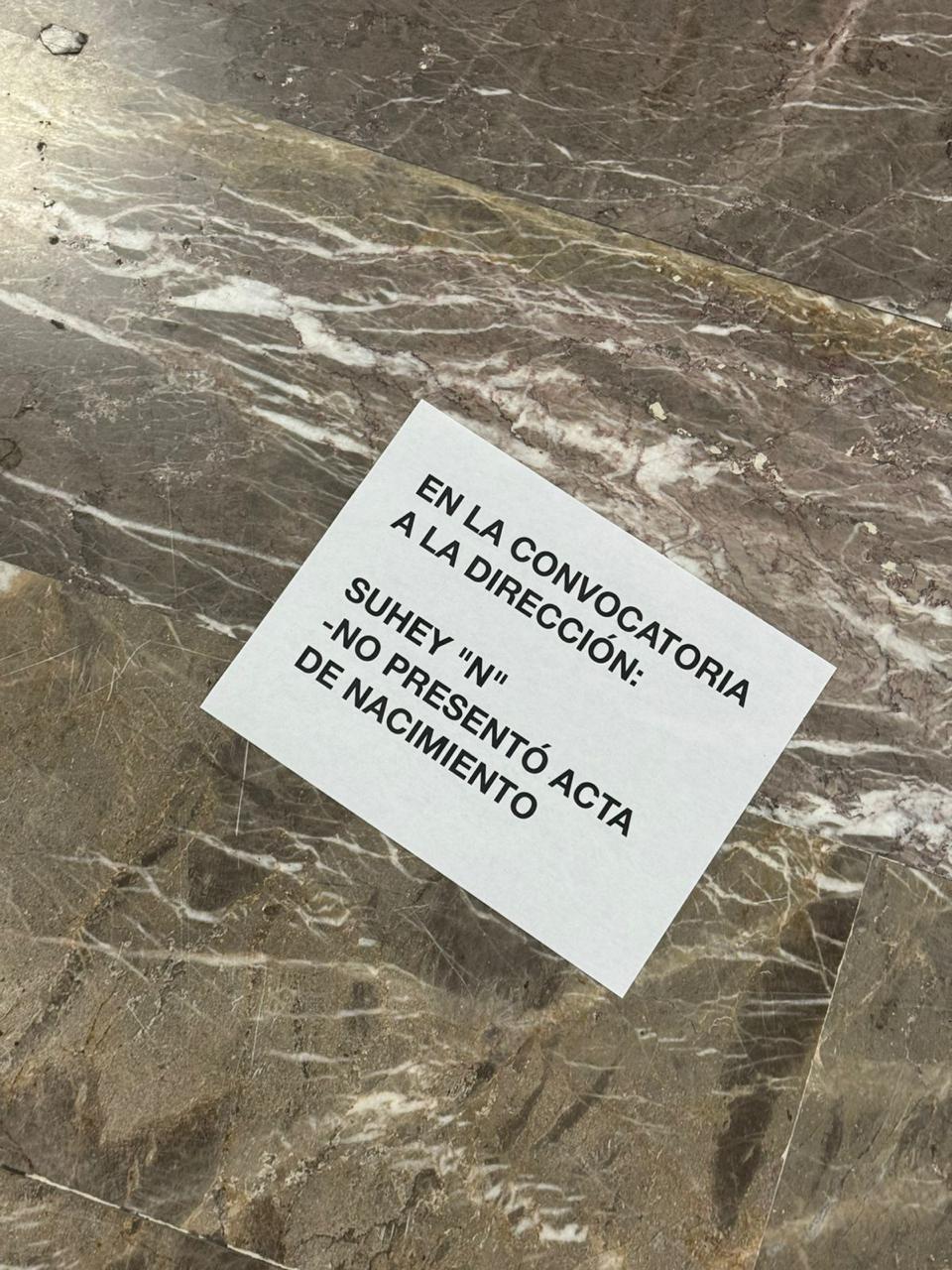 Fue este jueves, a la misma hora que sesionaba el Consejo Directivo Universitario que se comenzaron a pegar en diversas partes de la institución hojas de máquina con mensajes donde se justifica que no hayan entrado a la terna para ser consideradas.