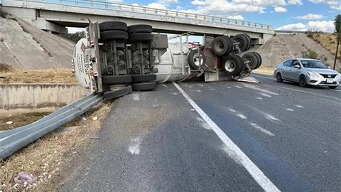 El incidente provocó tráfico lento en la zona mientras autoridades realizaban maniobras para retirar el tanque y estabilizar el área. Elementos estatales pidieron a los automovilistas extremar precauciones, ya que el tramo suele registrar alta circulación de transporte pesado.