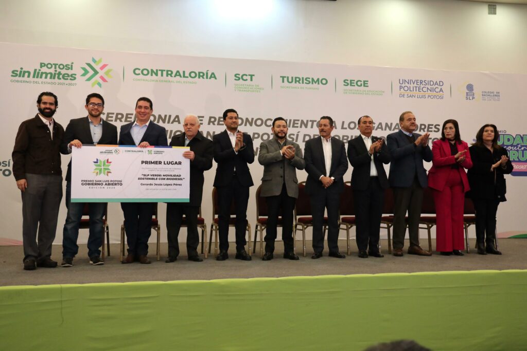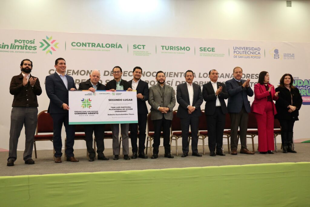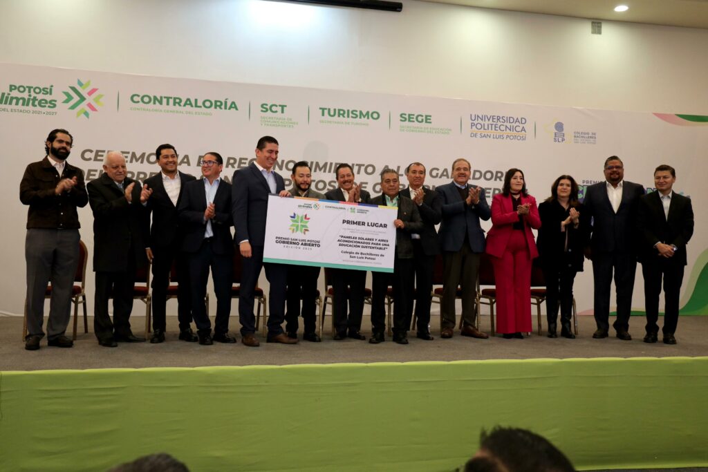 Los ganadores del “Premio San Luis Potosí de Gobierno Abierto” fueron: primer lugar para el Colegio de Bachilleres (Cobach), con su proyecto “Paneles Solares y Aires Acondicionados para una Educación Sustentable”; en segundo lugar, la Secretaría de Comunicaciones y Transportes (SCT) con “SCT en tu Whatsapp: Comunicación Directa y Transparente para una Movilidad Segura” y una Mención Honorífica para la Secretaría de Turismo (Sectur) con el proyecto “Códigos que Hablan”. Además, se llevó a cabo la premiación de la categoría Iniciativas de la Sociedad Civil.