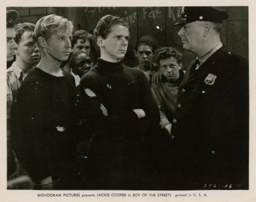 Lector: mi última recomendación de hoy es la actuación de Jackie Cooper en Boy of the Streets, dirigida en 1937 por William Nigh para Monogram. La puedes ver en YouTube gracias a @PizzaFLIX en la Liga 6, en Inglés con subtítulos automáticos (la tuerquita) bastante efectivos. El International Movie Data Base (IMDB) registra que el estreno en EUA ocurrió el 8 de Diciembre de 1937. Al parecer, tardó en llegar a México. El Informador de Guadalajara anunciaba en su edición del Sábado 3 de Febrero de 1940 que el Cine Regio exhibiría esa película de Jackie Cooper. La llamó El chico de la calle. (Puedes revisar esto en la página www de la Hemeroteca Nacional de México.) Recuerda que ese mismo año de 1937 Nigh dirigió —también para Monogram— al niño-actor Mickey Rooney en The Hoosier Schoolboy (El estudiante rudo) adonde el chico interpreta al hijo de un veterano pobre y marginado en un pueblo de Indiana dividido por un conflicto entre granjeros lecheros pobres y el capitalista que controla la pasteurizadora, que los primeros quieren convertir en cooperativa.