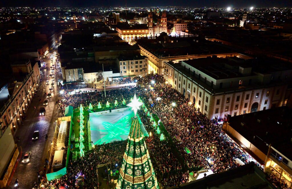 Gobierno del estado inició las celebraciones de la temporada navideña 2025 con la inauguración del Nacimiento en Palacio de Gobierno y el encendido de la Villa Navideña y el árbol monumental en Plaza de los Fundadores.