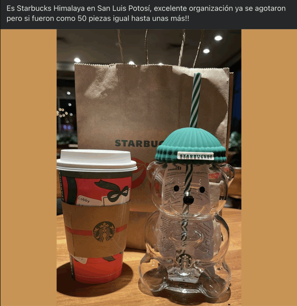 En la sucursal Himalaya, el inventario también se agotó rápidamente. “Es Starbucks Himalaya en San Luis Potosí, excelente organización, ya se agotaron pero sí fueron como 50 piezas, ¡igual hasta unas más!”, comentó una clienta sobre su experiencia en esta ubicación.