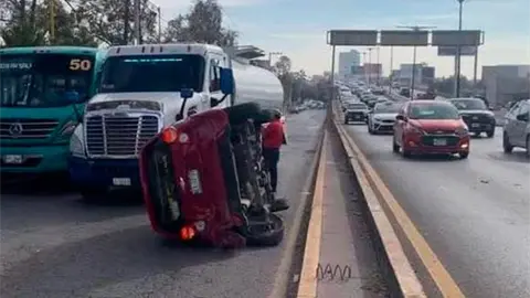 Un choque por alcance entre un Nissan Sentra y un Chevrolet Spark provocó la volcadura de este último en la avenida Salvador Nava, a la altura del puente Niño Artillero. El percance ocurrió poco después de las 11:00 horas, cuando el Sentra circulaba a exceso de velocidad y no guardó distancia.