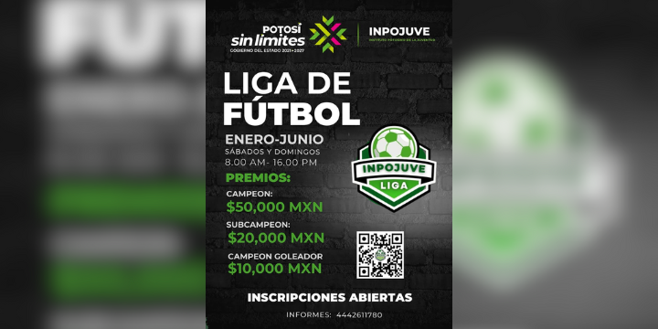 El Instituto Potosino de la Juventud (Inpojuve) lanzó la convocatoria para que las y los jóvenes de todo San Luis Potosí participen en el torneo INPOJUVE Liga 2026, que se celebrará de enero a junio con 16 equipos en competencia.