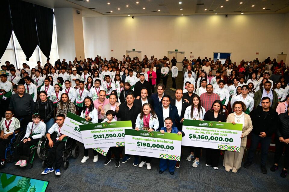 El Gobernador de San Luis Potosí Ricardo Gallardo Cardona, entregó estímulos económicos por 5 millones 160 mil pesos a 136 deportistas que obtuvieron medallas en los Nacionales y Paranacionales Conade 2025, así como en los Juegos Nacionales Populares, donde destacó que el deporte potosino vive su mejor etapa.