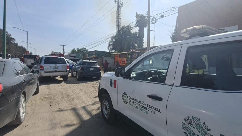 Equipos de Protección Civil y cuerpos de emergencia atendieron un incendio registrado en una tarimera ubicada sobre la carretera a Rioverde, a unos metros de la entrada a Real de Potosí.