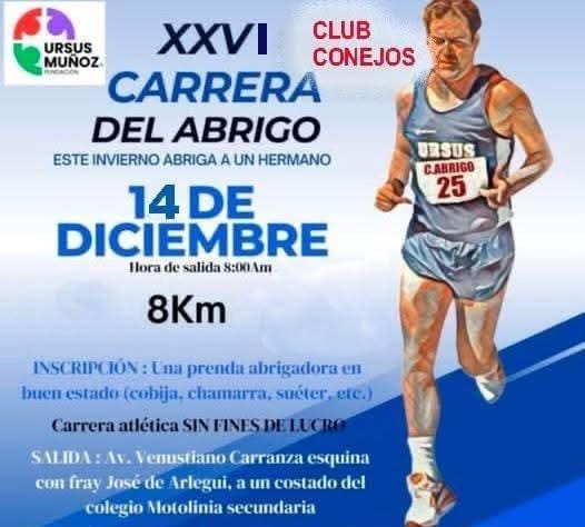 La carrera es organizada en esta ocasión por el Club Conejos Runners y la Fundación Ursus Muñoz, quienes convocan a la comunidad deportiva y al público en general a sumarse mediante un gesto solidario: la inscripción consiste en donar prendas abrigadoras, ropa o cobijas en buen estado o nuevas. No se requiere talla ni tipo específico, ya que las donaciones serán destinadas a familias de bajos recursos para apoyarlas durante la temporada invernal.