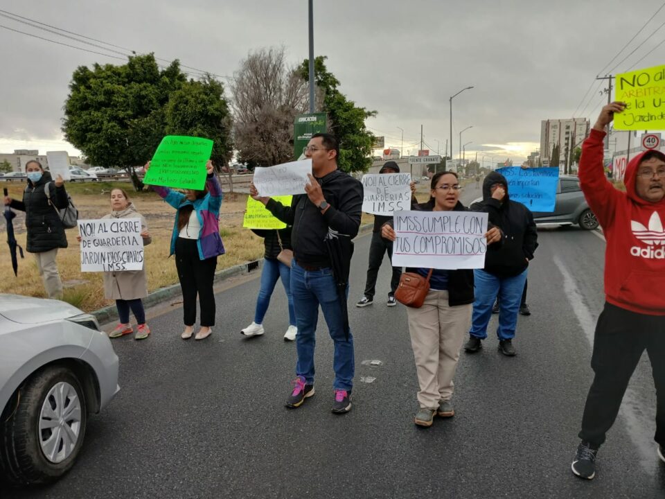 Este lunes, desde temprana hora los quejosos se manifestaron contra el cierre definitivo de la guardería U-1252, maternal potosina S.C., también conocida como el “Jardín de los Chavos”, ubicada en Jardines del Oriente. La principal queja es que la decisión se tomó sin previo aviso y comunicada una horas antes de la ejecución, dejando sin servicio a más de 170 niñas y niñas que dependían del cuidado brindado en ese espacio.