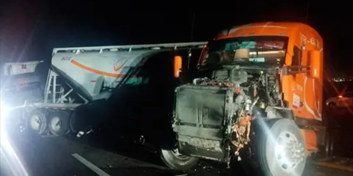 Dos vehículos pesados chocaron esta madrugada en el Libramiento Oriente, a la altura del kilómetro 9, cuando un tráiler no guardó distancia y se impactó por alcance contra una tolva. El golpe proyectó a la tolva contra la contención y dejó los carriles obstruidos, generando un bloqueo total por varias horas.