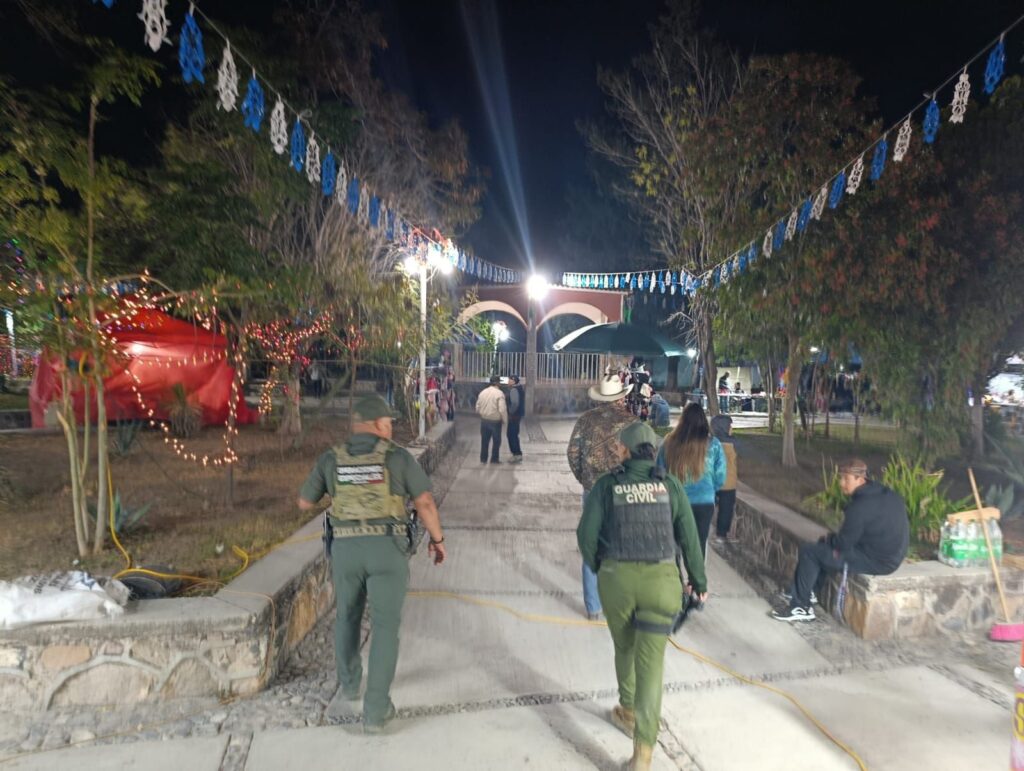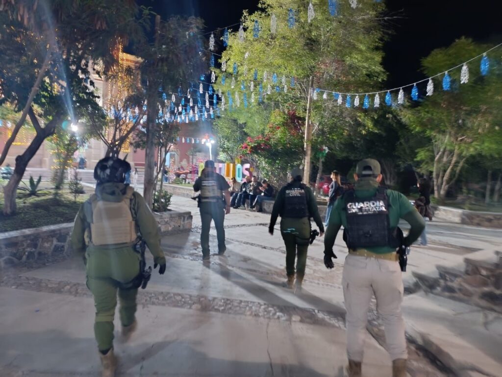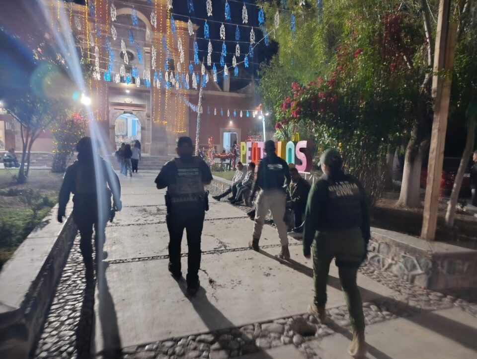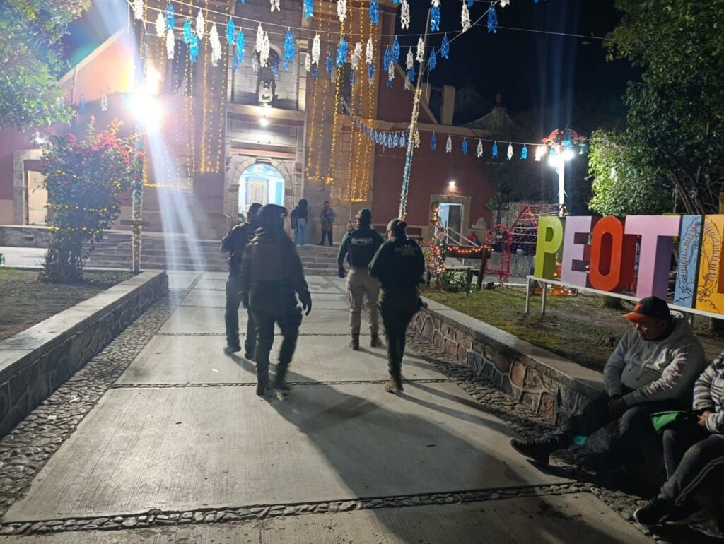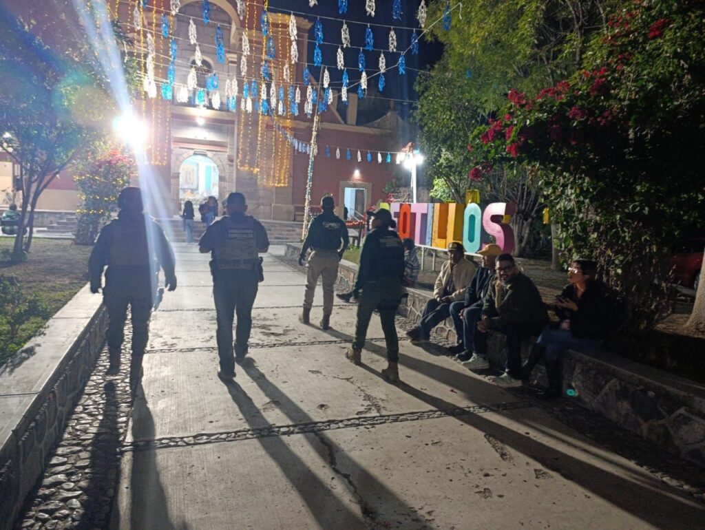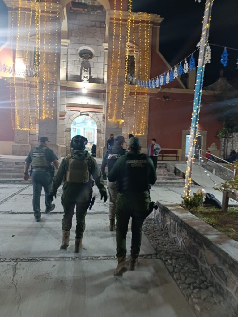 Elementos de la GCE, adscritos a la Base Operativa de Villa Hidalgo, mantienen vigilancia preventiva y presencia permanente en los principales puntos de afluencia, como la Iglesia de San José, en la zona centro del municipio, y la Iglesia de Nuestra Señora de Guadalupe, en la localidad de Peotillos.