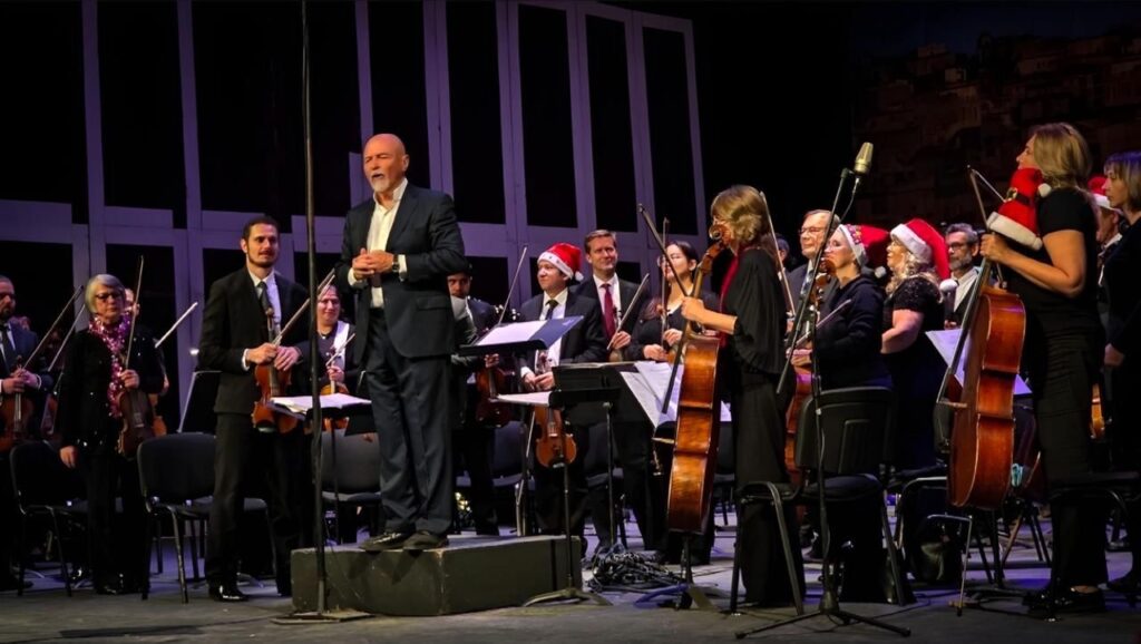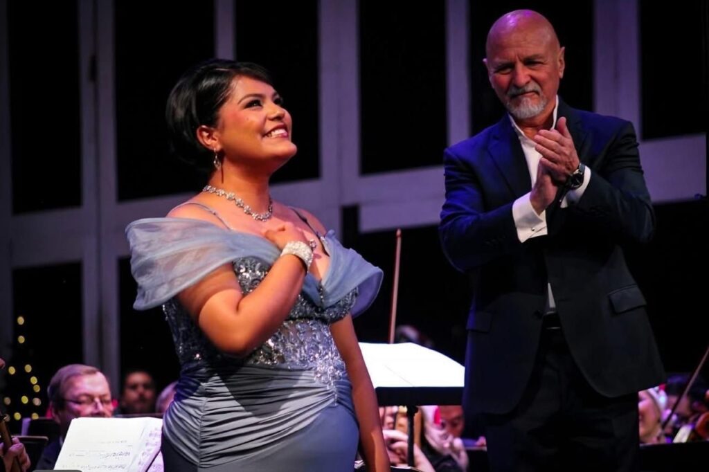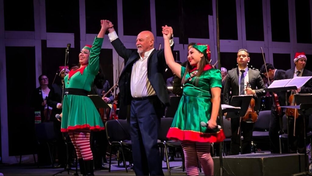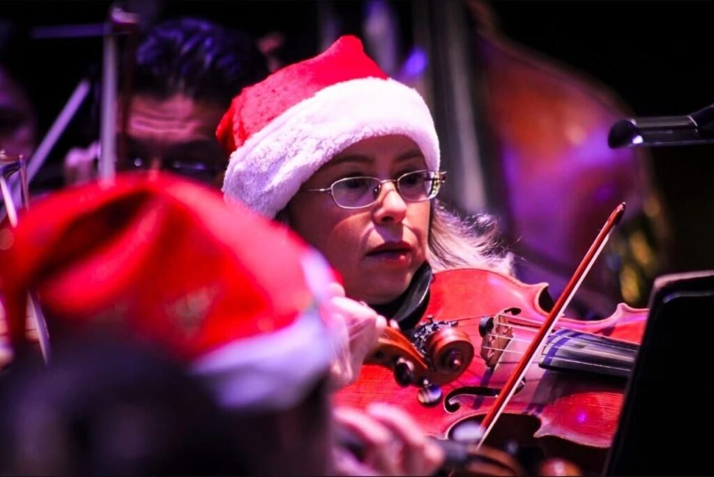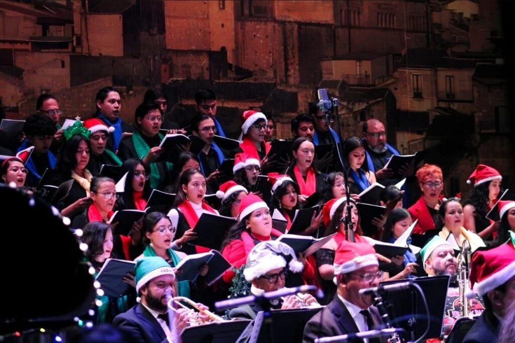 La Orquesta Sinfónica de San Luis Potosí presentó el concierto navideño en el Teatro de la Paz, bajo la dirección de Enrique Barrios, como parte de las actividades culturales que preparo el Gobierno del Estado,, a través de la Secretaría de Cultura (Secult) para que las familias potosinas y visitantes disfruten sin límites.