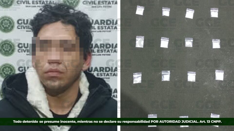 Mediante las acciones enfocadas en la prevención y la disuasión de acciones ilícitas, la corporación estatal informó que, durante un operativo entre Guardia Civil Estatal y personal de la Defensa, se detuvo a un presunto en la zona poniente de la capital potosina, por el probable delito de posesión de droga.