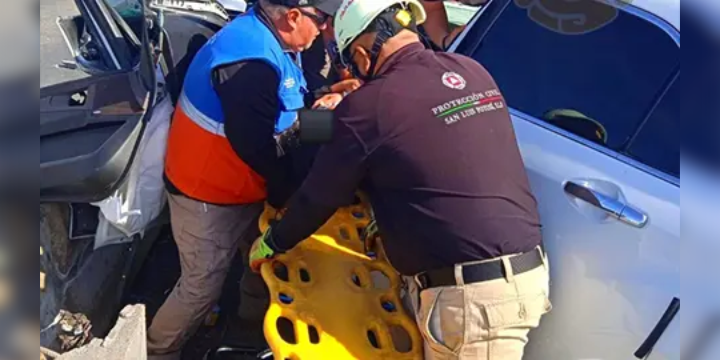 Tras el impacto, la camioneta fue proyectada contra el muro de contención, golpeándose con fuerza en el costado izquierdo, el cual quedó severamente dañado. Debido al choque, las puertas se atoraron y la conductora quedó prensada en el interior.
