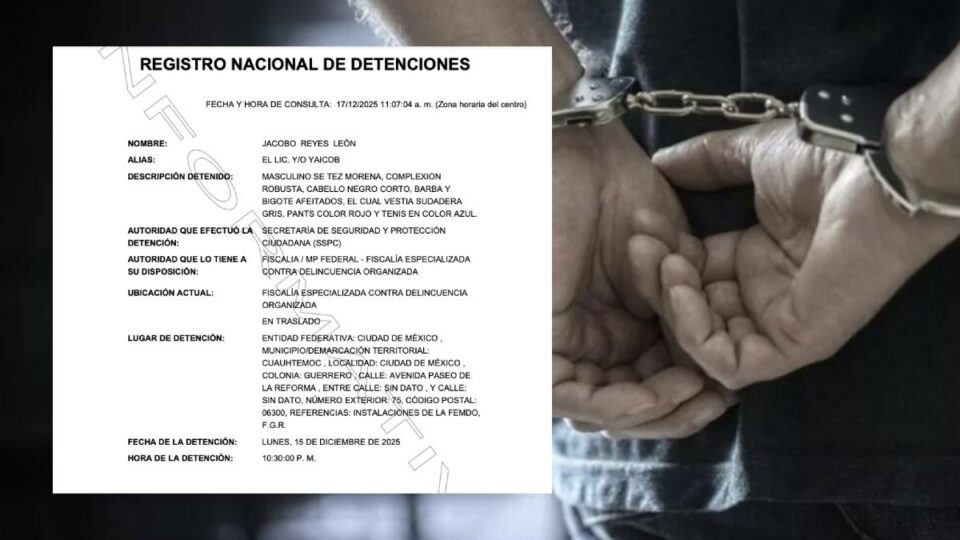 Jacobo Reyes León, alias “El Yeicob”, socio de Raúl Rocha Cantú, empresario vinculado a Miss Universo, se entregó de manera voluntaria a autoridades federales y es investigado por delitos relacionados con el huachicol y delincuencia organizada.