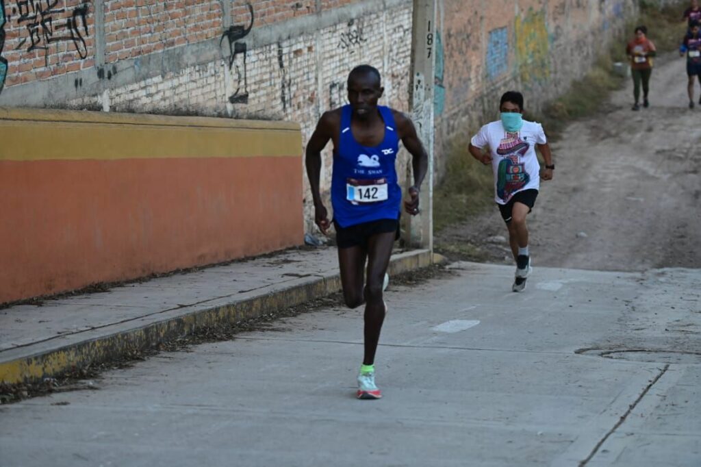 El keniano Alfred Kipserem Cherpo se impuso al mejor potosino en carreras de ruta Kalid Galván mientras que José Adrian Ramos se quedó con el tercer puesto y en femenil Gabriela Flores se impuso a la experiencia de Esmeralda Ramos y a Luz Elena González.