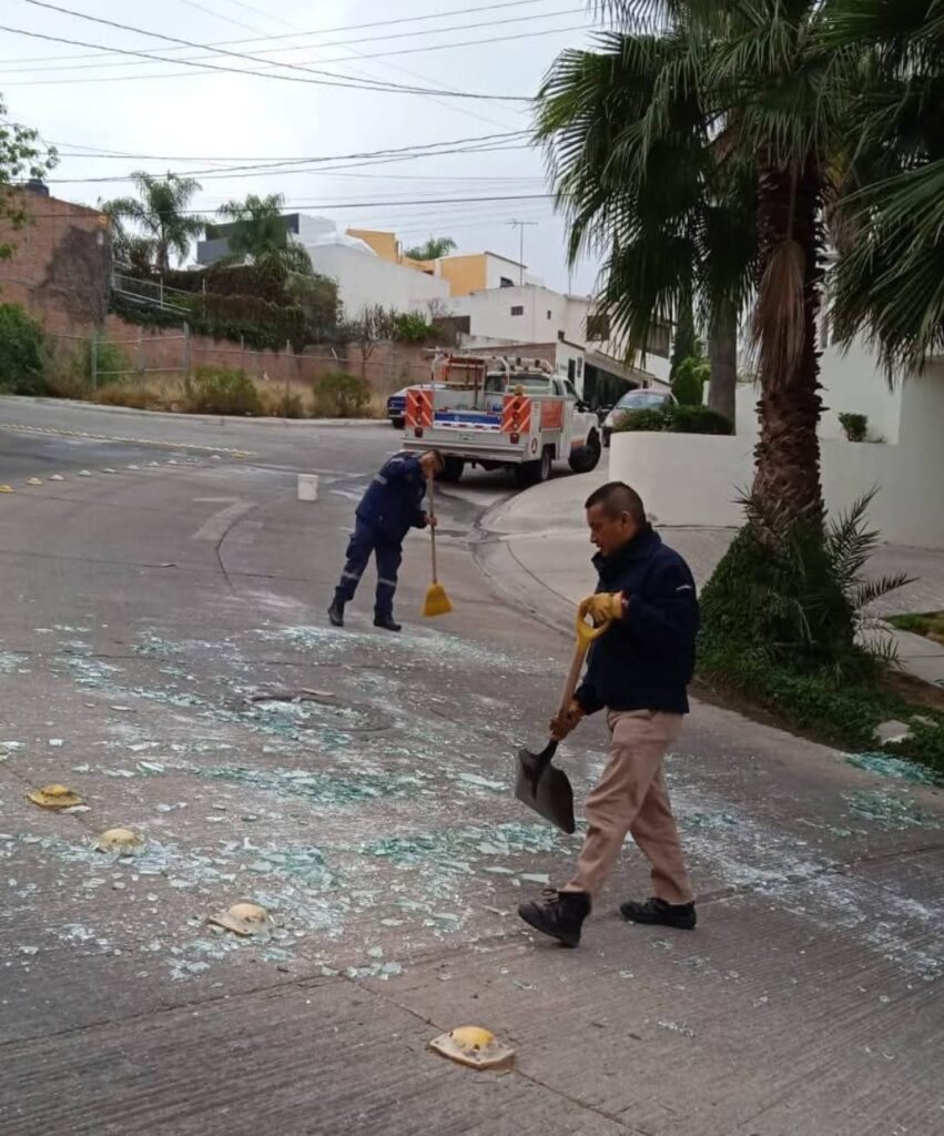 Personal del Área Operativa atendió de manera oportuna un reporte ciudadano por la presencia de una considerable cantidad de vidrios sobre el arroyo vehicular en la zona de Cordillera Occidental, al poniente de la ciudad, específicamente en una curva de poca visibilidad.