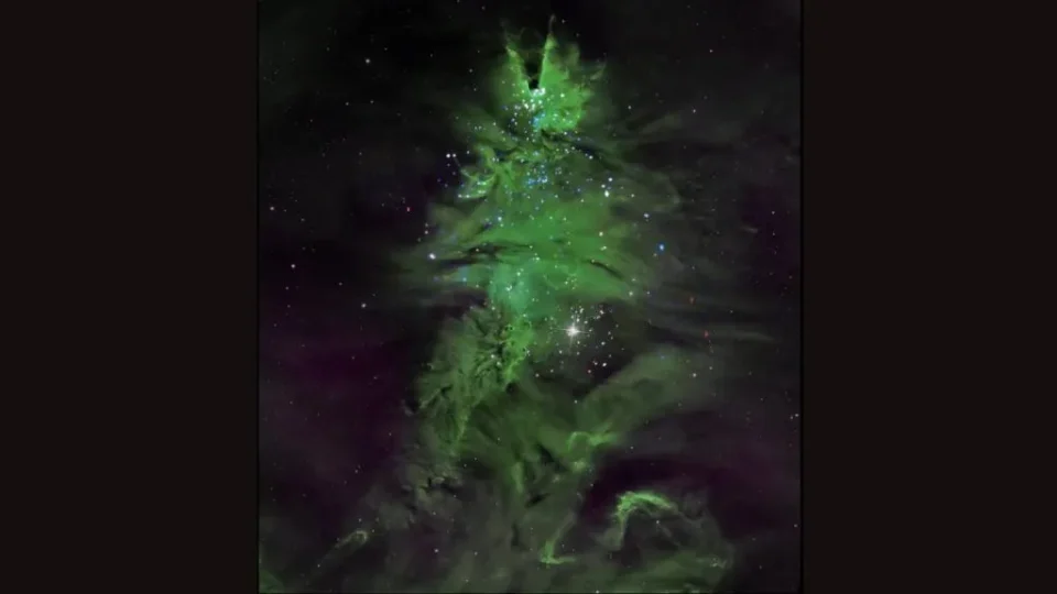 Un “árbol de Navidad” se formó en el espacio. La NASA reveló que se trató del “NGC 2264”, un cúmulo de estrellas jóvenes de entre uno y cinco millones de años, y ubicado a unos 2 mil 500 años luz de la Tierra.