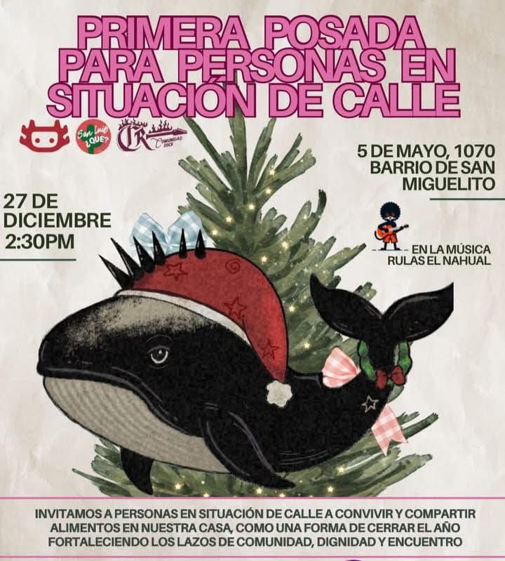 Este sábado 27 de diciembre, a partir de las 2:30 de la tarde, se llevará a cabo la primera posada dirigida a personas en situación de calle en el emblemático Barrio de San Miguelito, como una iniciativa comunitaria para fomentar la convivencia, la dignidad y el acompañamiento social.