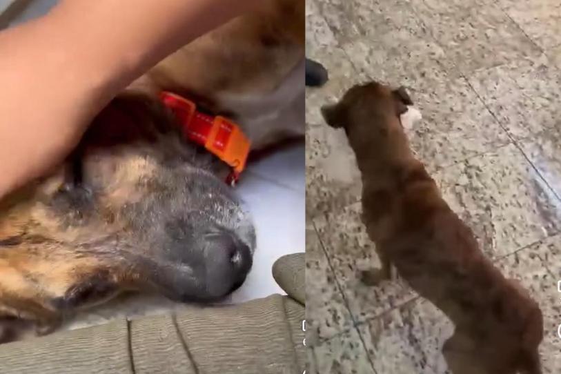 Uno de los momentos más celebrados fue cuando apareció usando collar y correa, jugando en un parque, explorando con curiosidad un entorno seguro y lleno de estímulos positivos. También se compartió una fotografía donde se le ve profundamente dormido sobre una cama, una escena que simboliza descanso, seguridad y el fin de noches inciertas en la calle.