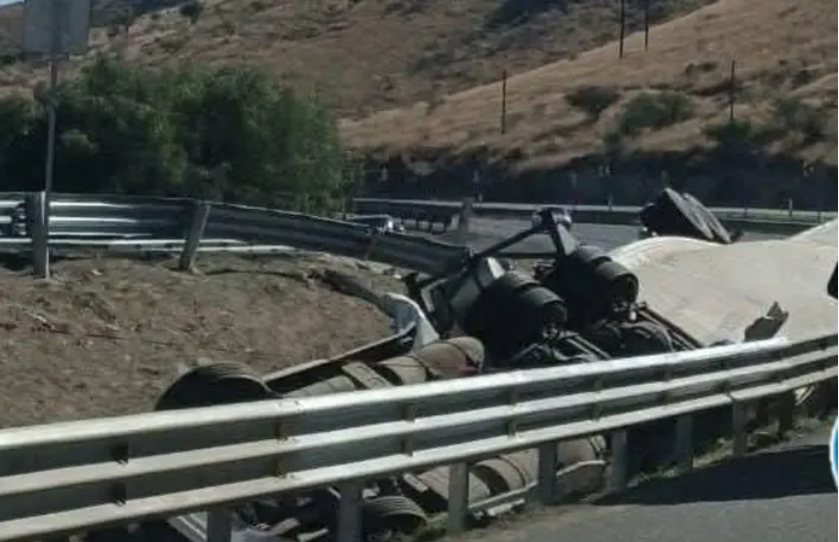 La volcadura de un tráiler registrada la tarde de este martes en la carretera a México, a la altura de la comunidad Fracción Sánchez, en el municipio de Santa María del Río, dejó como saldo una persona muerta y otra gravemente lesionada. El accidente ocurrió cuando el conductor perdió el control al tomar una curva, provocando que la unidad derribara parte de la contención metálica y quedara volcada. Paramédicos atendieron a los ocupantes, confirmando el fallecimiento de uno de ellos, mientras que el sobreviviente fue trasladado a un hospital. Autoridades federales y peritos realizaron las diligencias correspondientes.