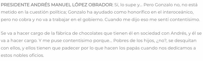 También menciona que Jorge Amílcar Olán Aparicio es uno de los mejores amigos de Gonzalo López Beltrán.