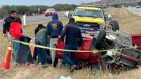 Un choque por alcance seguido de volcadura se registró la mañana de este miércoles en la carretera a Matehuala, a la altura del kilómetro 39, dejando como saldo una persona sin vida y dos lesionadas. El accidente ocurrió cuando un automóvil Chevrolet Aveo impactó por detrás a un tráiler, presuntamente por no guardar la distancia de seguridad, lo que provocó que el vehículo se saliera del camino y terminara volcado. Paramédicos confirmaron el fallecimiento de uno de los ocupantes, identificado como Pablo Iván García, de 45 años, mientras que los otros dos fueron trasladados a un hospital. Elementos de la Guardia Nacional y personal de la Fiscalía General del Estado realizaron las diligencias correspondientes.