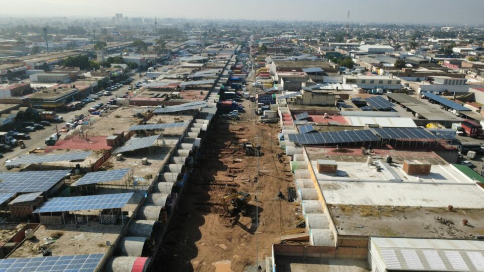 La modernización de la zona de abastos avanza de manera sostenida con los trabajos que se desarrollan en Calle Sexta, tanto en su tramo oriente como poniente, donde se registra ya un avance del 50 por ciento. Esta intervención forma parte de las prioridades enfocadas en rescatar vialidades en abandono que hoy resultan fundamentales para la actividad económica de la ciudad.