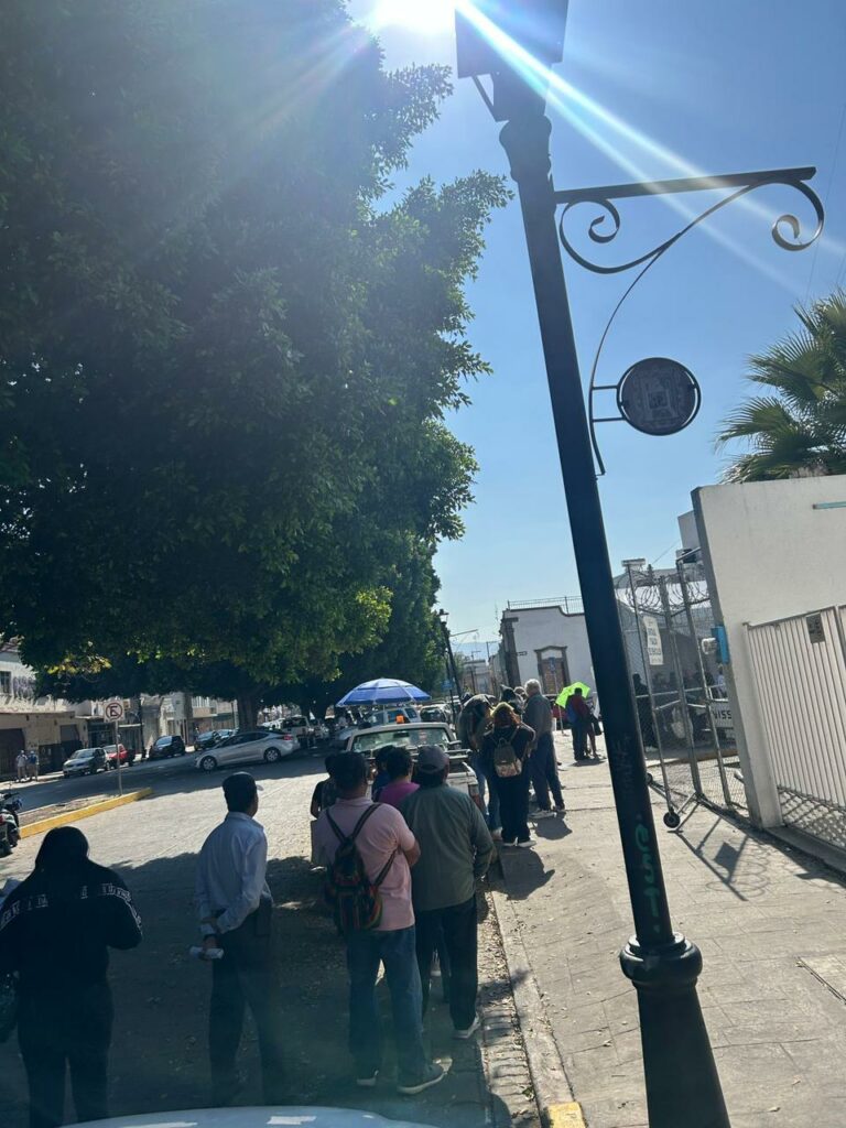 Desde tempranas horas se registran largas filas de contribuyentes en la Caja Recaudadora del Ayuntamiento de San Luis Potosí, ubicada sobre la calle Damián Carmona, en el Centro Histórico, para realizar el pago del impuesto predial.