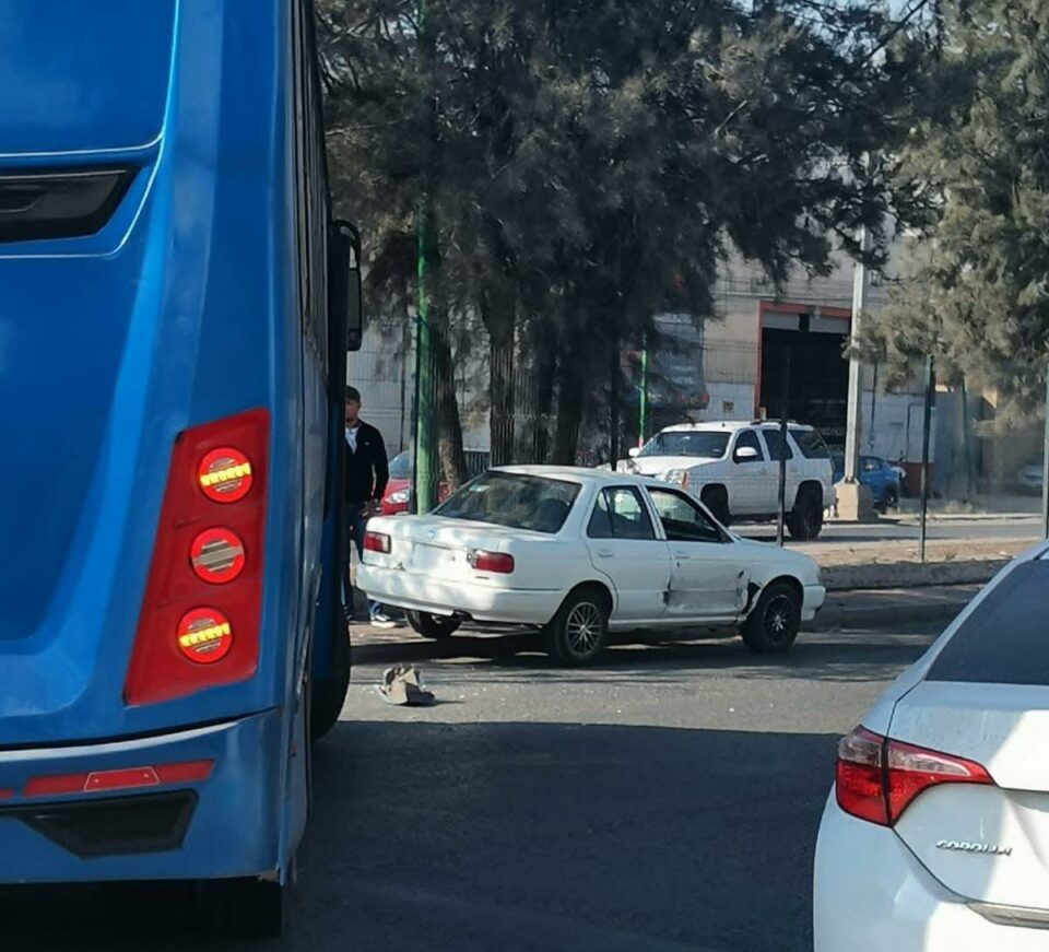 Un choque entre un camión y un automóvil tipo Tsuru se registra la mañana de este martes en la carretera a Rioverde, antes de llegar a Periférico, en el sentido que va de Gómez hacia dicha vialidad.