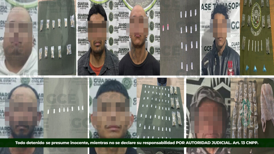 En la zona centro del municipio de Tamasopo, efectivos de la GCE aseguraron a Erick “N” de 27 años de edad, después de asegurarle tres dosis de “cristal” y 15 de marihuana; por último, en el municipio de Villa de la Paz, se detuvo a José “N” de 41 años, después de asegurarle 25 bolsas con marihuana.