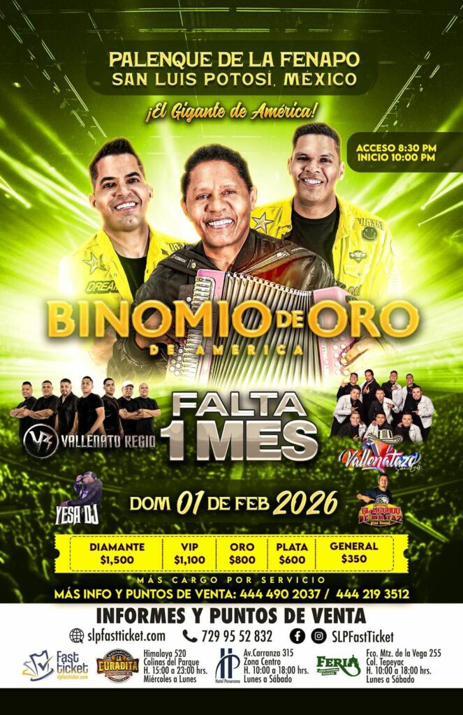 El presidente del Patronato, Fernando Rojo Ocejo, dio a conocer que para el 1 de febrero se vivirá la adrenalina del Demolition Derby DCar Fest, con autos de destrucción, choques americanos, drift, burnout, música en vivo y actividades para toda la familia y ese mismo día, el Palenque recibirá al Gigante de América, Binomio de Oro, acompañado de exponentes potosinos del vallenato y talento invitado de Monterrey.