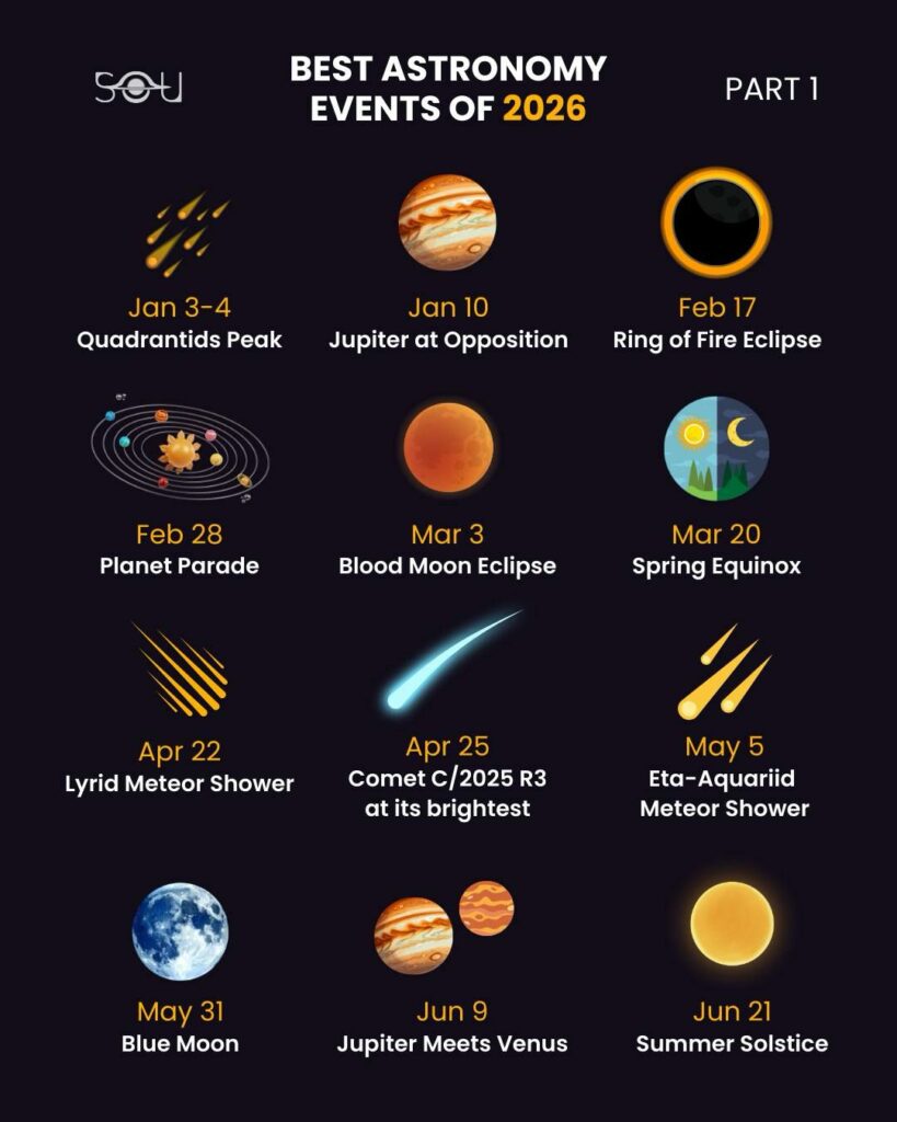 Mira al cielo este 2026: fechas de todos los eclipses y fenómenos que se podrán ver en México