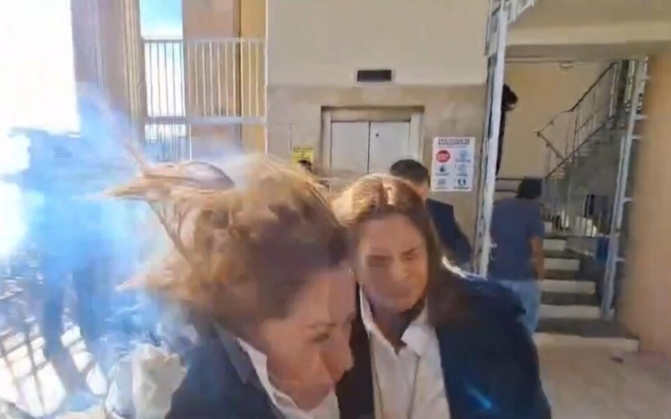“¿Por qué no entraron (en el Parlamento)?”, preguntaron periodistas a Gladys y a una compañera. Y cuando la diputada pronunciaba aparentemente un “cerraron”, el artefacto, proveniente del exterior del recinto, le explotó en la espalda, según las imágenes difundidas de lo sucedido.