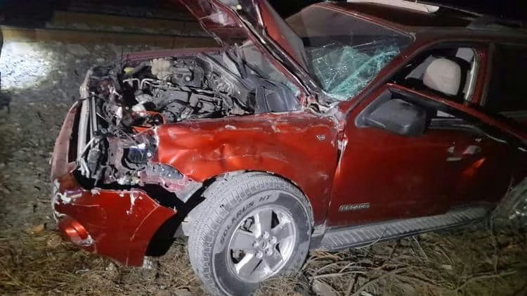El incidente se registró cerca de la medianoche del jueves en la calle Héroes de Nacozari, a corta distancia de las instalaciones de Pemex, cuando el tren impactó una camioneta Ford Escape color guinda, de procedencia extranjera, causándole daños materiales.