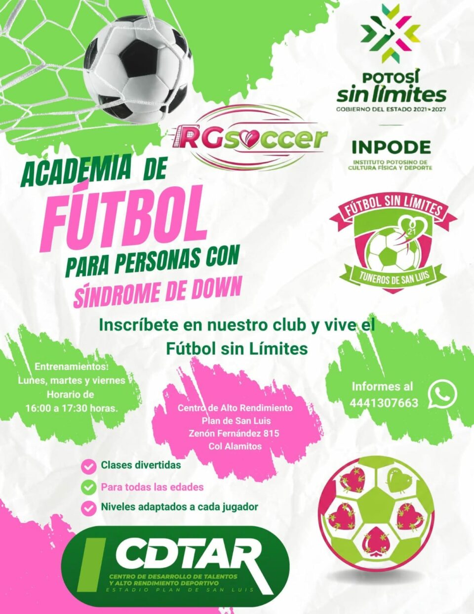 San Luis Potosí contará con un centro de formación de futbol especializado para personas con síndrome de down, será dirigido por Juan Lechuga Páez, entrenador y metodólogo que se ha distinguido por apoyar a deportistas con discapacidad ya que además ha preparado y dirigido a las selecciones de futbol para ciegos logrando importantes logros a nivel nacional.