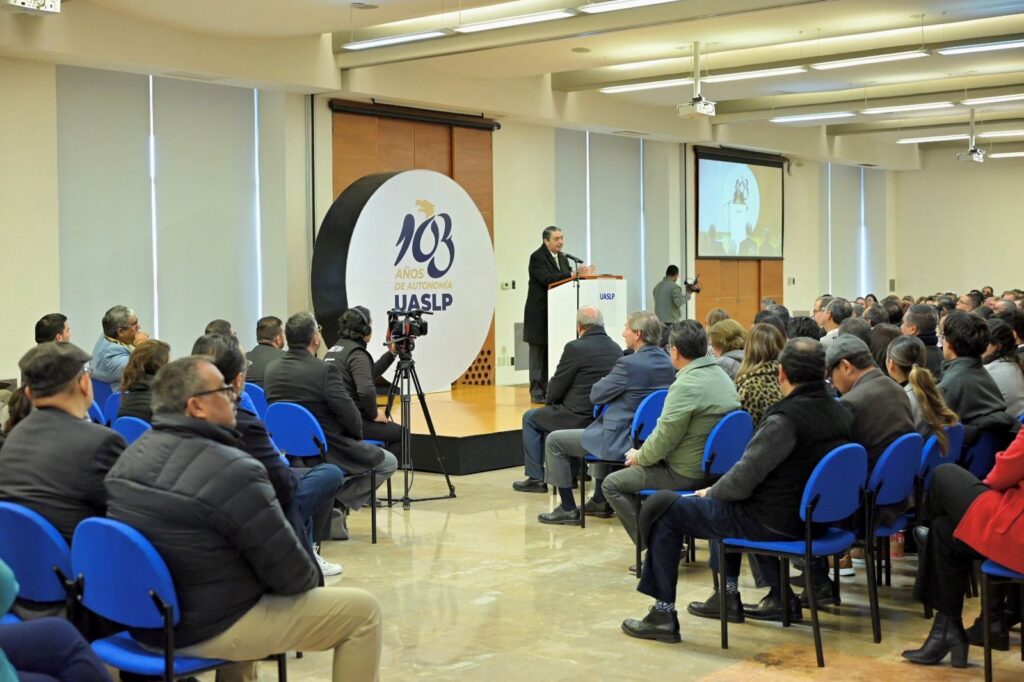 Para inaugurar el Diálogo Universitario, el rector de la Universidad Autónoma de San Luis Potosí, doctor Alejandro Javier Zermeño Guerra, destacó que cumplir 103 años de autonomía convierte a la institución en una de las más antiguas de México y una de las cuatro o cinco más antiguas de América. Recordó que, como todos los entes autónomos, a lo largo de este siglo la UASLP ha enfrentado distintos intentos de intervención en su soberanía.