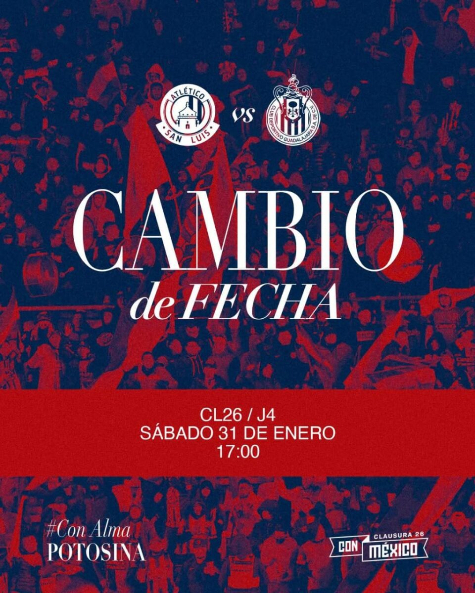 El partido de la jornada cuatro del Torneo Clausura entre Atlético de San Luis y el Club Guadalajara cambia de fecha según lo dio a conocer el club potosino.