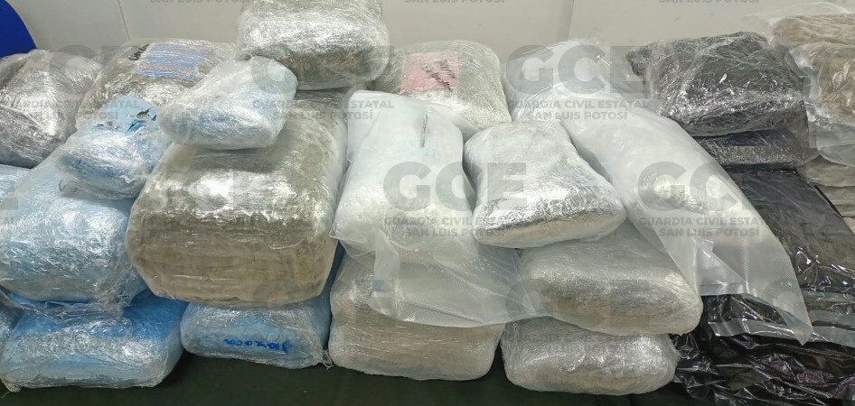 Lo asegurado consiste en 101 paquetes de marihuana, con un peso aproximado de 65 kilogramos, un cañón con guardamano, además de una mira telescópica, ambos componentes correspondientes a un arma de fuego larga.