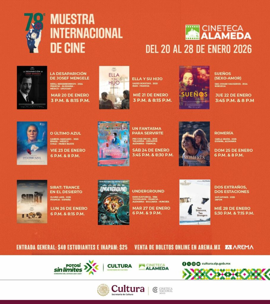 La Cineteca Alameda será sede de la 78 Muestra Internacional de Cine (MIC), uno de los encuentros cinematográficos más importantes del país, que se llevará a cabo del 20 al 28 de enero de 2026 en San Luis Potosí.