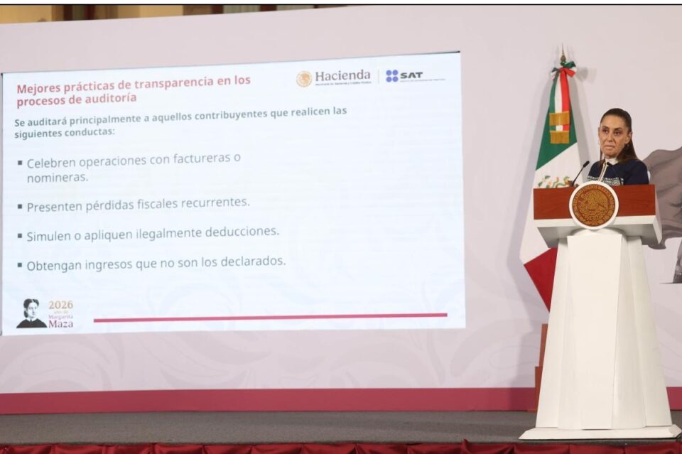 El Servicio de Administración Tributaria (SAT) fortalecerá el combate a la evasión fiscal durante 2026 con la intención de incrementar sus ingresos, afirmó la presidenta Claudia Sheinbaum. En la rueda de prensa matutina destacó que para este año se espera superar en 498 mil millones de pesos los ingresos tributarios del gobierno federal mediante el combate a empresas “factureras” y “nomineras” que utilizan diversas estrategias para evadir el pago de impuestos.