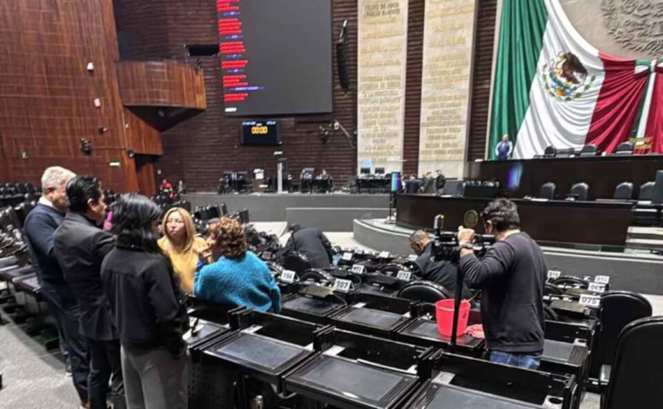 Goteras interrumpen sesión en la Cámara de Diputados; ponen cubetas para proteger curules y micrófonos